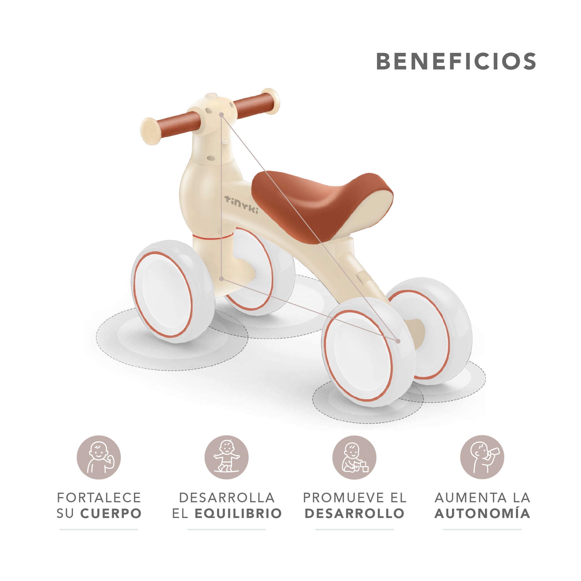 El color beige transmite calma y combina con todo. Su diseño ergonómico y estructura robusta hacen del correpasillos niño y niña la mejor opción para quienes buscan equilibrio, calidad y estilo en un solo producto.